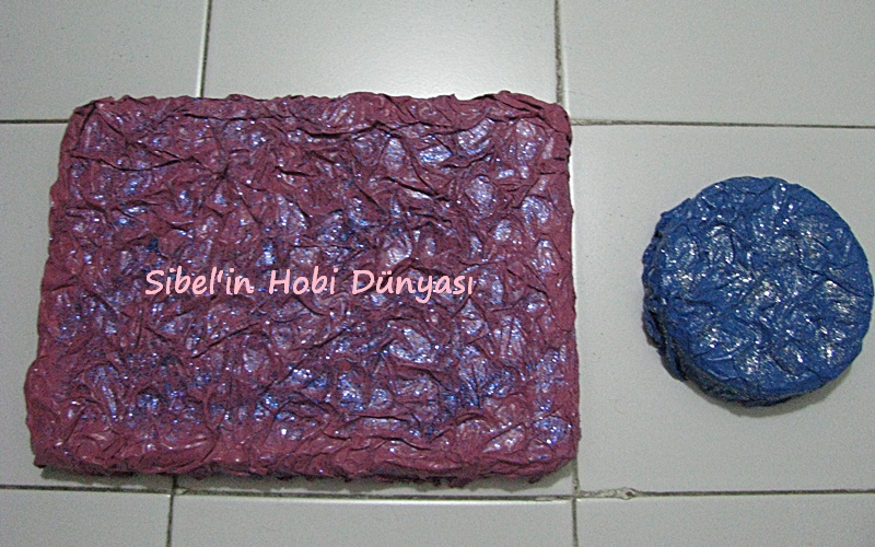 Şimdi bir yenileme ile karşınızdayım ve sizlerle paylaşmak istiyorum. Kursta öğrendiğim bir teknik ile kutularımı yeniledim. Metal, kapaklı bir kavanoz ve köpükten yapılmış bir kutum vardı, onları yenileyip kullanmak istedim ve kağıt doku ile hareket katıp, bir güzelce boyayıp, simler döküp, vernikledim, hatta kullanıyorum bile :D...